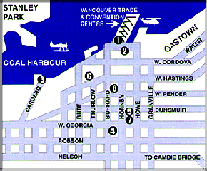 Rates include a full Canadian Breakfast. The Hotel Georgia is located in the heart of downtown Vancouver across from Pacific Centre shopping mall, which has over 200 stores. The hotel is four blocks from the VTCC and 10 minutes walk to Stanley Park. Facilities include 313 air-conditioned rooms, the Cavalier Grill restaurant, two lounges and a pub, plus beauty salon and shops. (Triple A, Three Diamond).